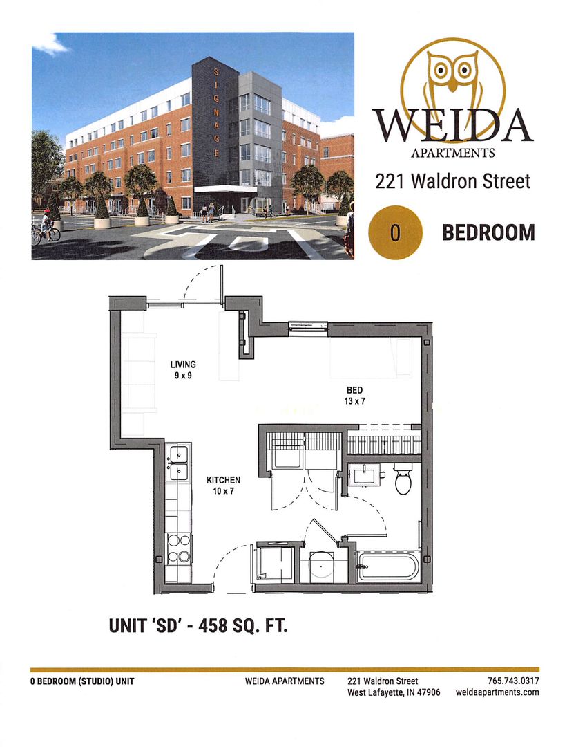 Lovely furnished studio apartment at 221 Waldron. Located on the corner of Waldron & Third Street, Weida on Waldron is close to it all! All appliances including in-unit washer & dryer. Apply today or call Weida Apts for more information. 765-743-0317
